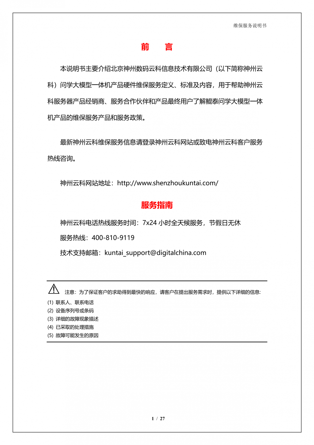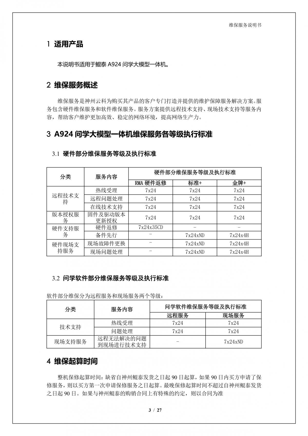 凯发k8国际A924 DS大模型一体机硬件维保服务说明书_V1.1